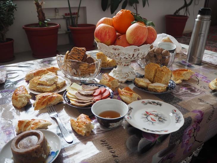私がホームステイしていたおうちでは、年明け2日に同じタシケント市内にあるお母様のお父様宅へ訪問。私もご一緒し、家族団らんの中に入れさせてもらい、新年のご馳走をいただきました。