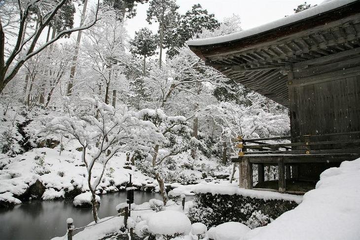降り続く雪のなか、本堂からの眺めも見事でした。