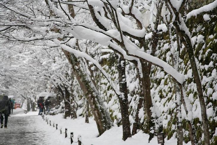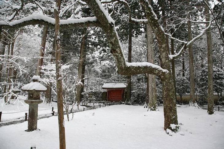 庭園の「有清園」には庭一面を覆いつくす苔が生えていることが有名で、各所にわらべ地蔵がおられるのですが、この日は一面の雪景色でお目にかかれませんでした。