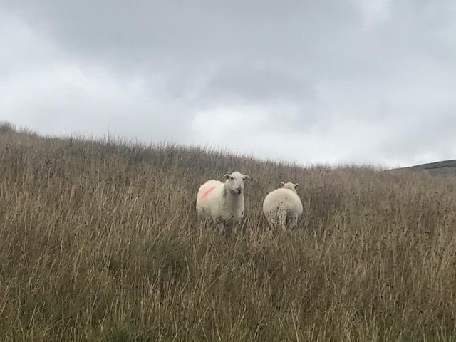 山頂へと続くフットパスは途中、牧草地にもなっていて、羊の姿も……。