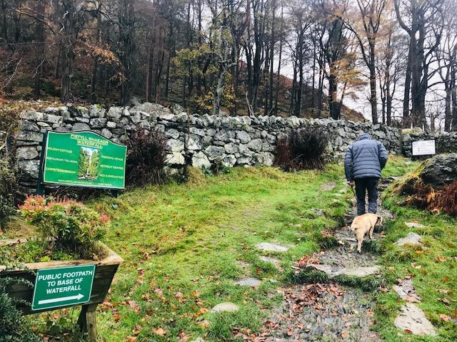 そこから直接、滝のふもとへも行けますが駐車場手前に設置された標識に沿って、パブリック・フットパス(散策道)を歩けば高台から滝を望むことができます。ただし、安全策など一切ないので足元にはくれぐれも注意が必要です。