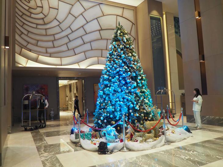 それでは入ってチェックインしてみましょう。ロビーは小ぢんまりとしていますが、この国の年末年始には欠かせない立派なツリーが立っていました。