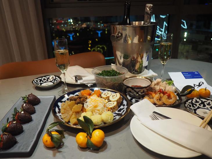 しかしタシケントシティの夜景を眺めながらのフライングおせちと年越しそばも、なかなかオツなものでした。おそらく一生忘れられない年越しでしょう。