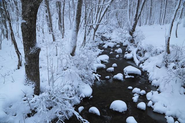 雪うさぎのような石が覆う川の流れが印象的でした。
