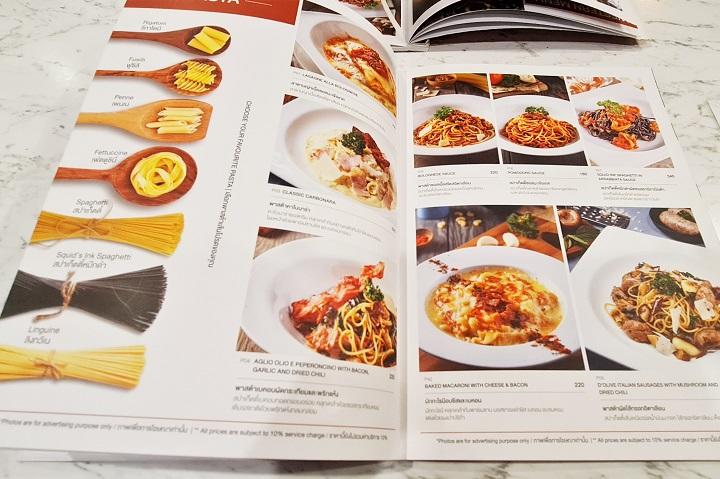 タイ料理と西洋料理のメニュー(一部)を写真に収めたので、参考までに以下に貼り付けておきます。写真を撮り忘れましたが、ピザも豊富にありました。以前パタヤのチョコレートファクトリーで頼んだピザは、サクパリッとした薄焼きタイプでした。