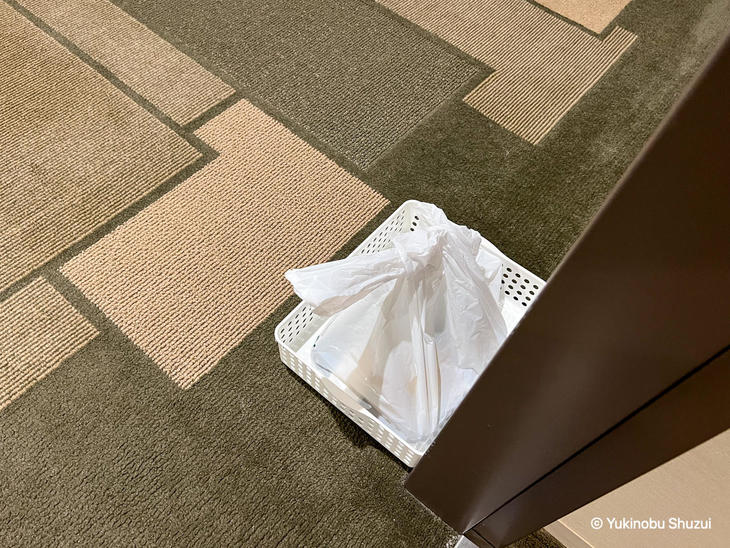 グレイスリー新宿の場合、食事は時間になると各部屋のドアすぐ横の廊下に置かれて配膳されます。