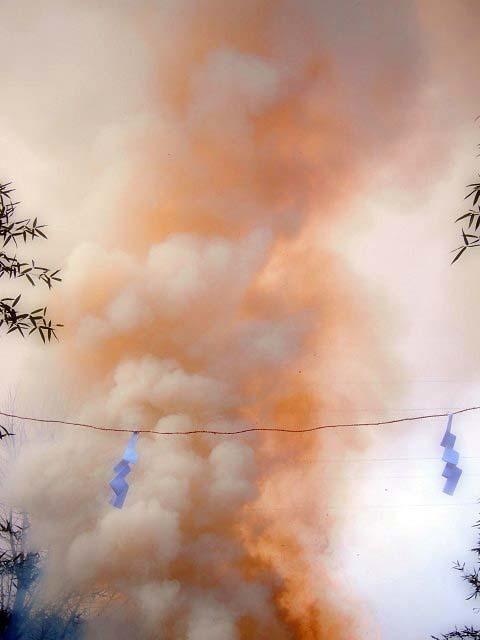 逆巻くようなすさまじい煙は、まるで龍神が天に昇っていくようです。