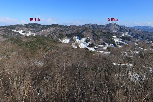 これから登る天井山と、先月初旬に登った女神山が確認できます。