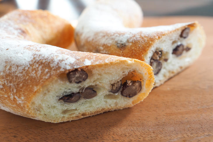 フランスパンにほんのり甘いブランドあずき「大納言」が練り込まれたパンです。