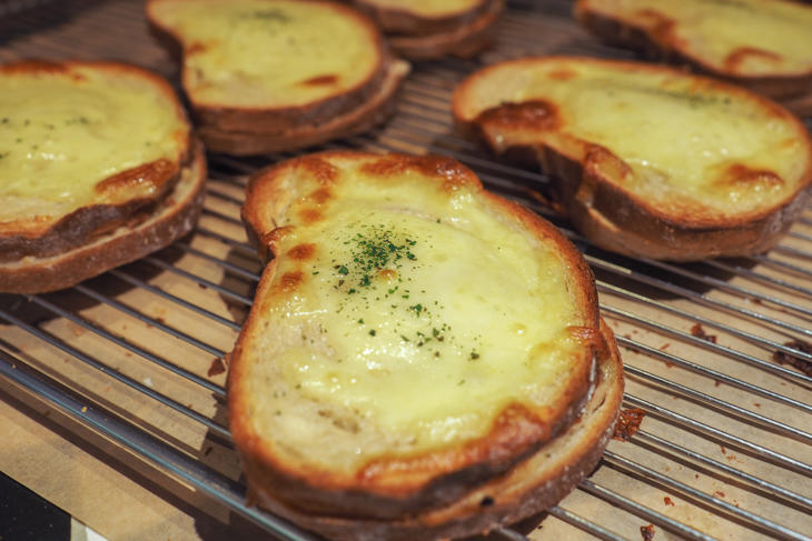 朝早くから営業を開始する「パン屋Sora」ですが、お昼時に焼きあがっていたのは「ローストチキンのクロックムッシュ」(300円)。
