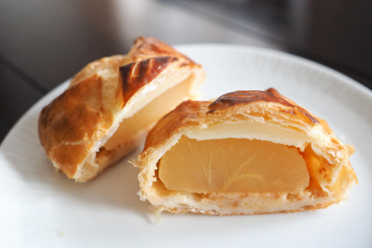 おいしそうな焼き色に引かれる「アップルパイ」(300円)も、リンゴが詰まっている贅沢なアップルパイ。