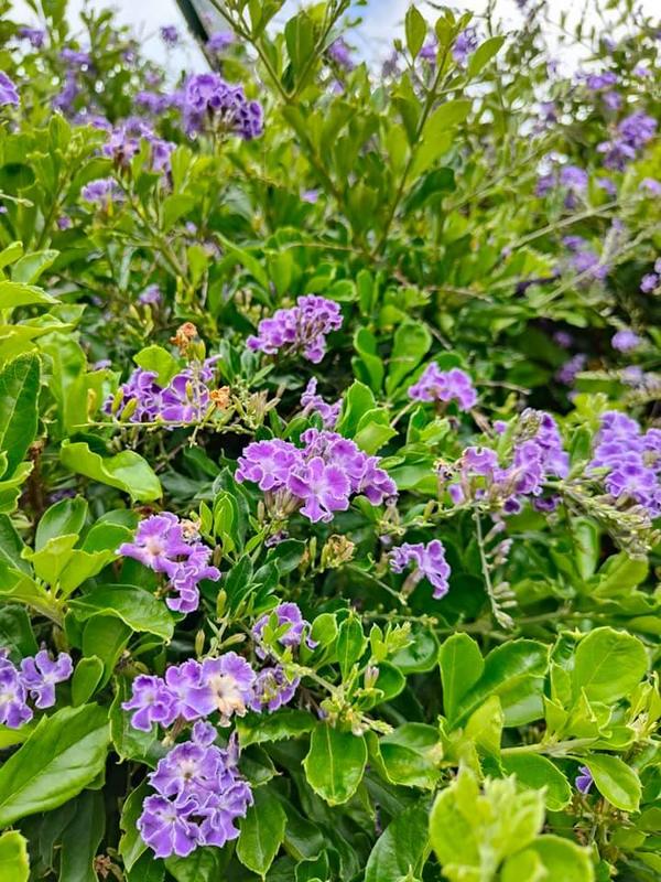 ↑デュランタ(Duranta) 緑と紫の色の組み合わせがとても綺麗です日本でいうと、7月後半の気候のようなポートリンカーン海風が時折強くなり、寒く感じる日もあります。