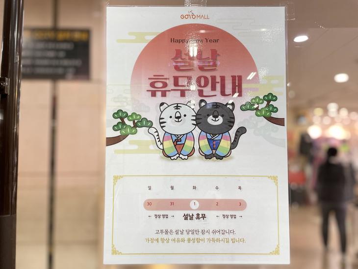 高速バスターミナル内のお店やGOTO MALLは2月1日がお休みのところが多く、このようなお知らせが貼られていました。
