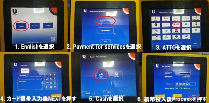 下記黄色い支払機でのチャージ方法を画像で説明しましたので、ぜひご参考に。おつりは出ないので要注意です。
