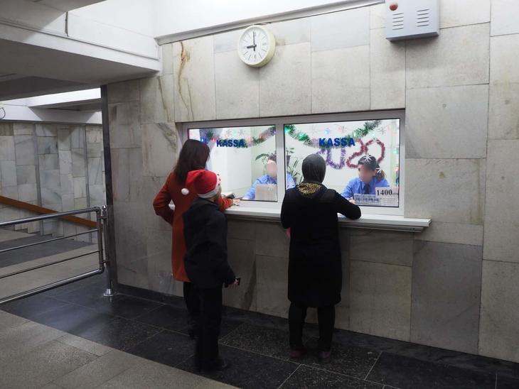 階段を下りるとKASSAまたはКАССА(カッサと読む)と書かれた窓口があり、ここで切符を買うことになります。窓口のスタッフはたいていふたり、典型的な旧ソ連圏のおば様職員といった感じで、混雑しまくっていてお客たちが殺気立っているのに仕事しているのはひとりだけでもうひとりは手持ち無沙汰そうにしている、なんてことはタシケントメトロあるある。