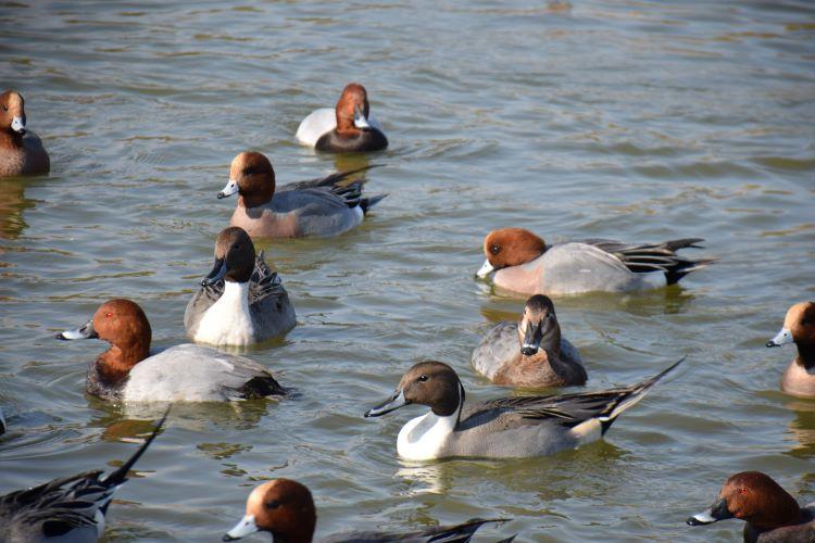 オナガガモ、ホシハジロ、ヒドリガモ、キンクロハジロなどが気持ちよさそうに泳いでいます。