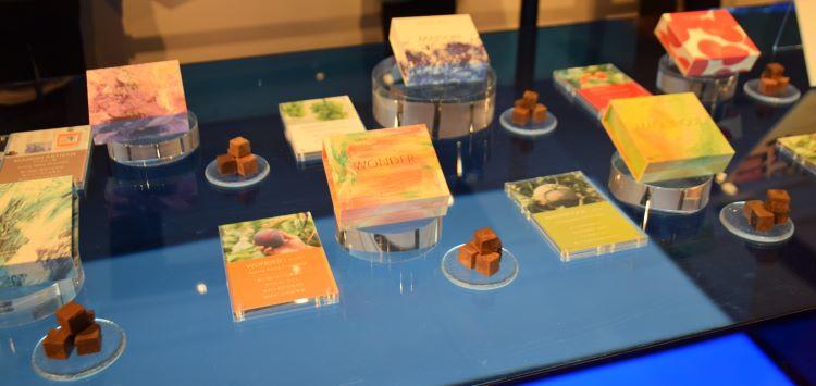 カカオワールドのエリアに、下の写真のフォトスポットがあります。カカオワールドエリアでは、チョコレートソムリエさつたにかなこさん代表のトモエサヴ―ルから、シンガポールのフォッサチョコレート徳島コレクション。筆者は徳島県に3年間住んでいたこともあり、徳島の食材は気になります。阿波番茶、インディゴ(藍)など4種類あり、柚香&酢橘が欲しかったのですが売り切れで、すじ青のりにしてみました。酢橘(すだち)は生産量全国シェア98%という徳島の名産ですが、柚香(ゆこう)は生ではほぼ出まわらない貴重な柑橘です。お好み焼きには徳島県産のすじ青のりと決めているのですが、大阪ではなかなか手に入りにくいんです。まだ食べていないので感想は言えませんが、青のりのフレーバーチョコレート、楽しみです。もう1つは、3年連続で購入しているパンプストリートベーカリーチョコレート。イギリスのベーカリーカフェが作っており、ライ麦パン粉のザクザク感がたまらないんです。