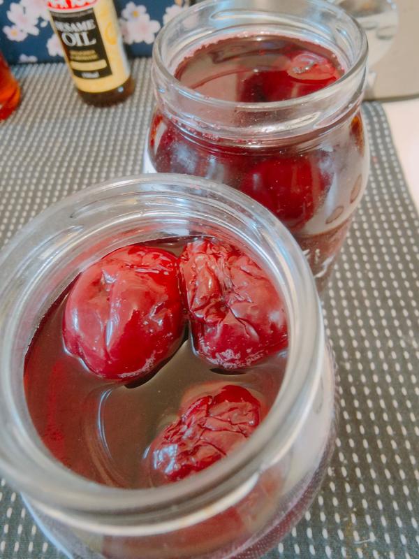 レシピ、要領はアプリコットの時と同じ。ただし、今回は乾燥した後に梅酢に戻しました。