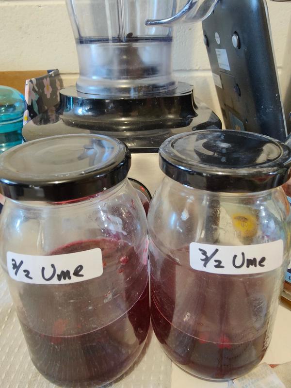 材料:プラム、塩はプラムの18% クエン酸はプラムの2%、洗浄用のアルコール、ジップロック、ストロー1.プラムをよく洗って、アルコール度数の高いもので拭き取り(日本手ぬぐいやキッチンタオルが拭き取りやすいです)2.アルコールでジップロックの内側を拭いて消毒