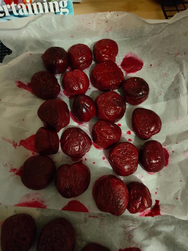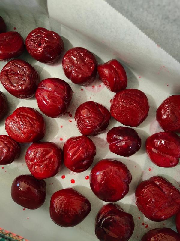 ↑洗って、アルコールで丁寧に拭き取った後の梅