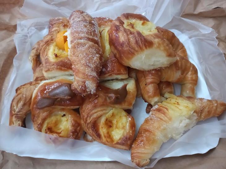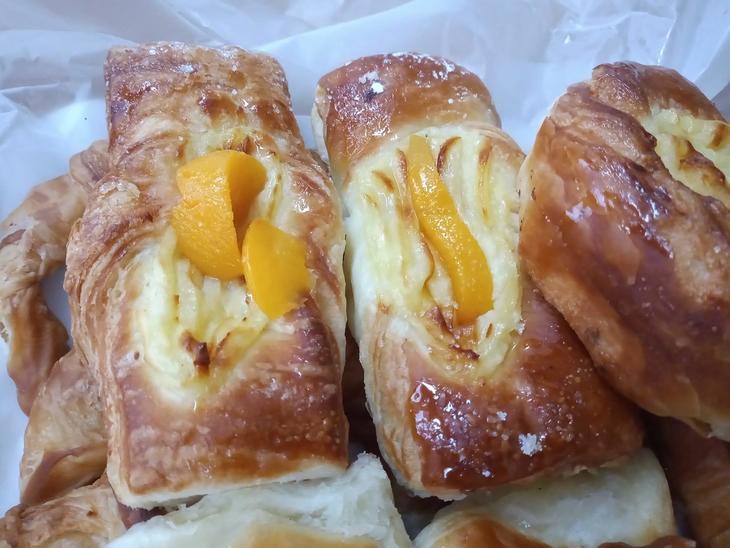 クリーム入りのデニッシュ。よく桃が入っています。これはお店の名物だそうなのでです! 訪れる機会があればぜひ食べてみてください。