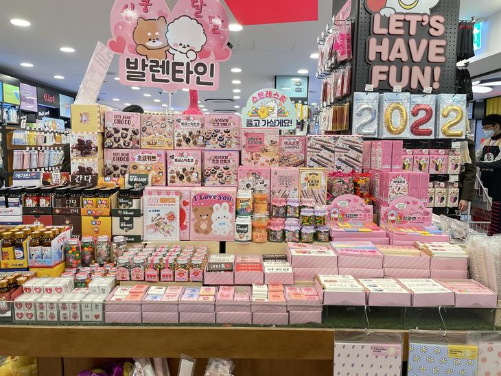 明日2月14日はバレンタインデーですね。韓国も日本と同様に友達やお世話になった人に義理チョコを渡したり、好きな人にチョコを渡したりする習慣があります。そのため、さまざまなお店がバレンタインデー前にチョコレートなどお菓子を売り出しています。今回はソウルのバレンタインデーの陳列の様子を見てみました。