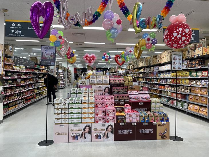 Emartはバレンタインデーセールをしていて、クーポンを使用で10%割引など、お得に買い物ができました。ハートの風船のディスプレイは韓国ダイソーと似ていますね。