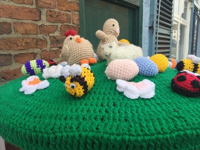 近付いてみると、手編みのカバーを被っていました。愛くるしい編みぐるみはウサギや卵、チキンなどで春の季節行事のイースターがテーマになっている様子でした。