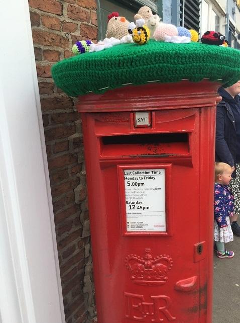 SNSで拡散されて、今や全国的に広まった郵便ポストの手編みカバー。イギリスでは今も主流の"ずんぐりむっくり体形"のポストによく似合っていますよね!