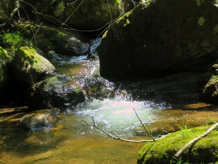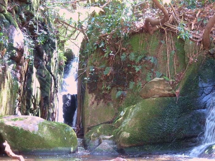 ズ~~ムアップ!! 落差は、8.1mと低いのですが滝つぼの下流は高さ約8m、長さ約20mの花崗岩で囲まれていて真夏の昼でも薄暗く冷気を誘うんだそうですよ。