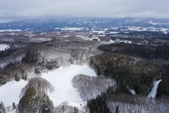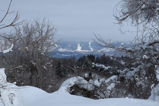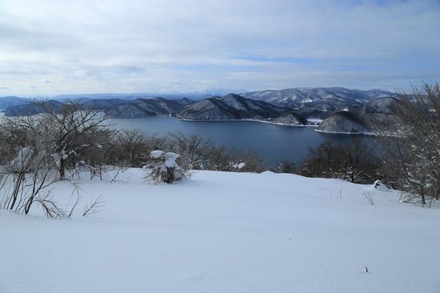 奥には博士山など雪纏う奥会津の峰々が広がっています。