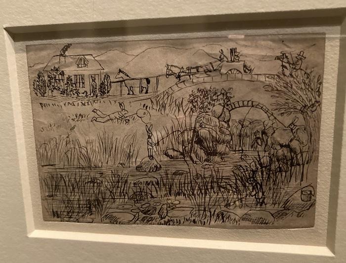 10歳の頃描いた風景画のなかには、草むらにウサギが虫取り網を持って跳ねてますよ! 絵が上手いだけでなく自由な空想力があったからこそ、後にピーター・ラビットたちを生み出すことができたのですね。