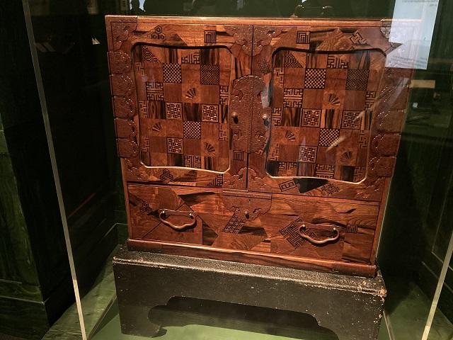 1800年~1850年にイシカワ・ニヘイという人が作った寄せ木細工の箪笥。こうした調度品や家具に、ポター家が豊かな家庭だったことがうかがえますね。