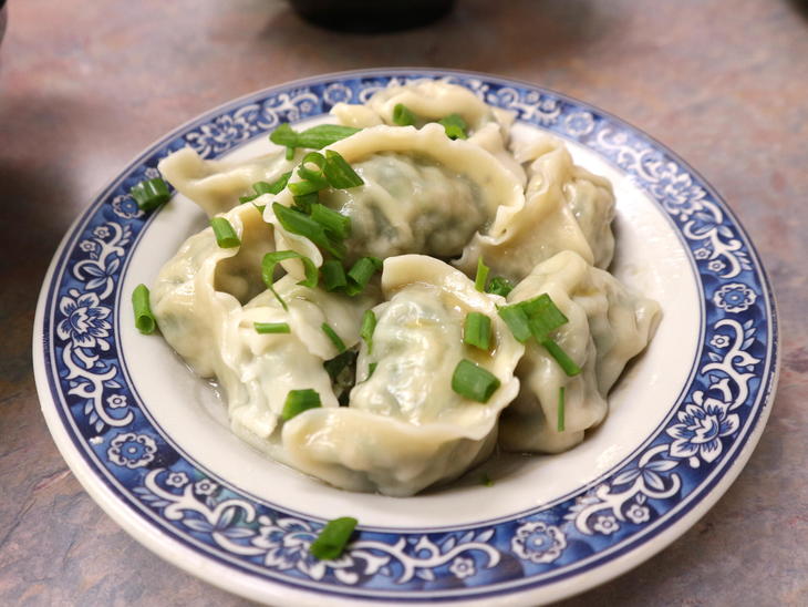 ▲豚肉とチャイブの水餃子:作りたてはおいしい! 辛いのがお好きな人はチリオイルたっぷりの水餃子もあります。