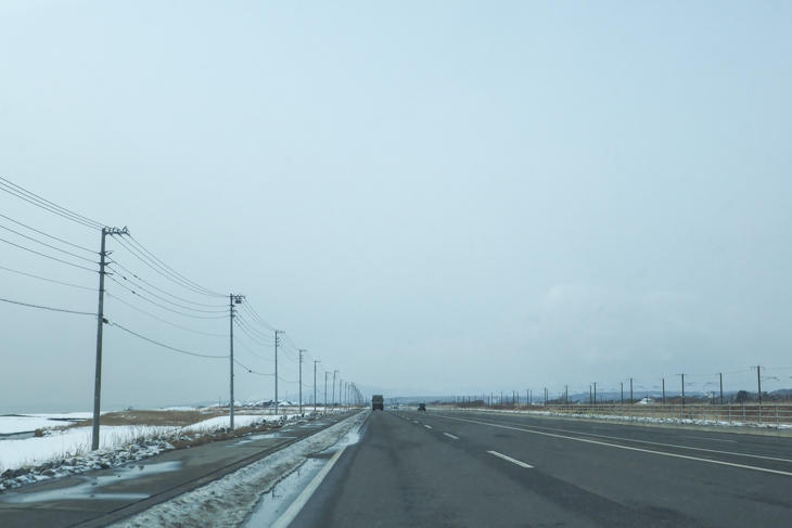 苫小牧方面から国道235号線を走ると、左手には海岸線が続きます。