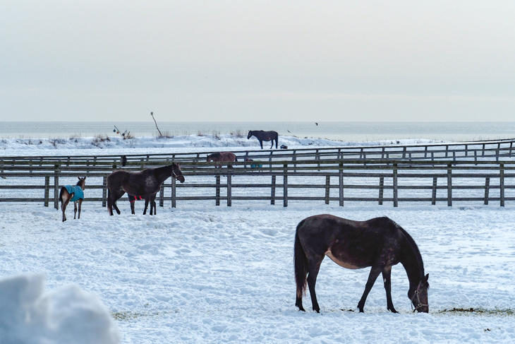 白老町は、苫小牧市や西隣の室蘭市などとともに太平洋岸沿いにある町で、札幌などのと比べると真冬でも雪が少ないエリアです。