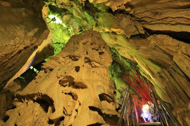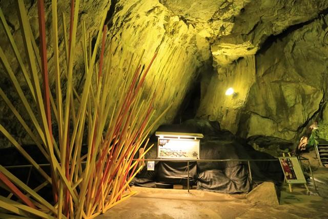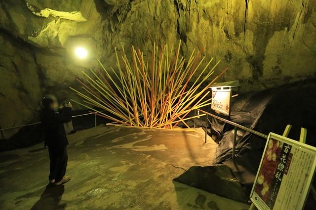 色彩豊かな大型作品やフジや桜等をあしらった生け花が洞内の5個所に展示されています。