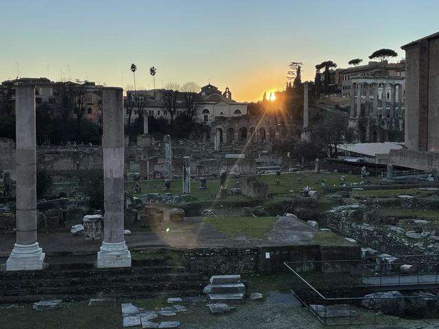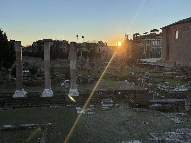今日は、夕暮れ時に撮影をした世界遺産のローマ遺跡「フォロ・ロマーノ」に落ちる夕日のお写真を一緒にお届けいたします。
