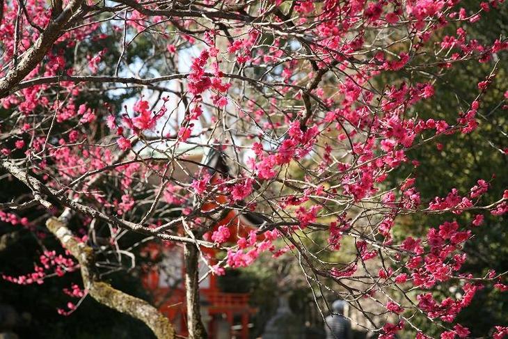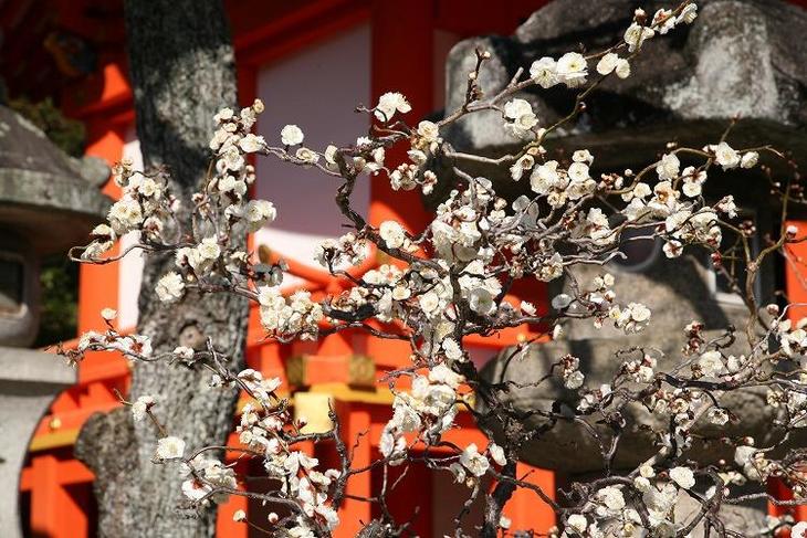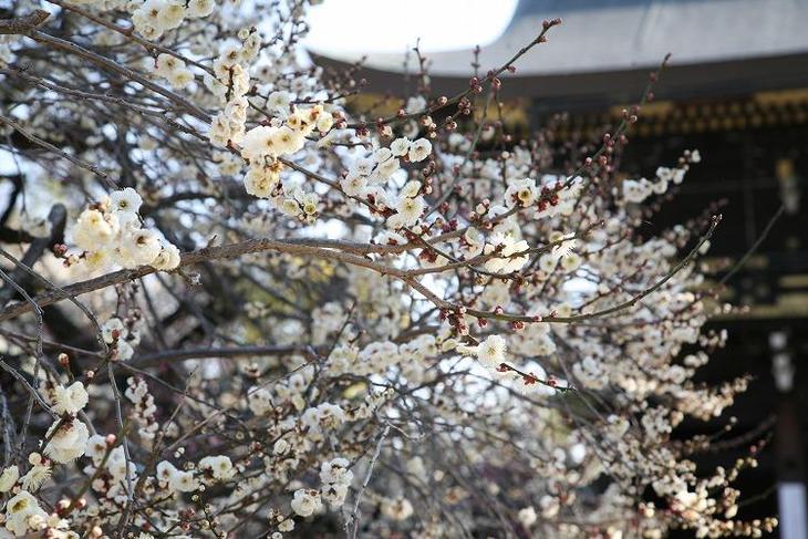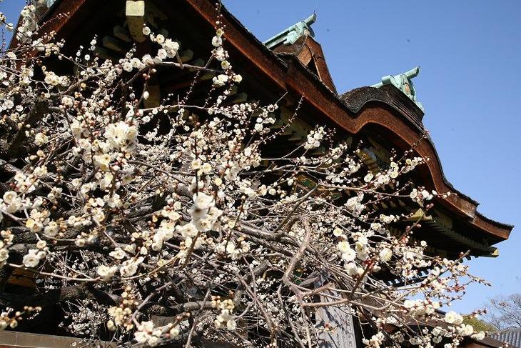 北野天満宮の境内には、菅原道真公ゆかりの梅が50種類・約1500本植えられていて、