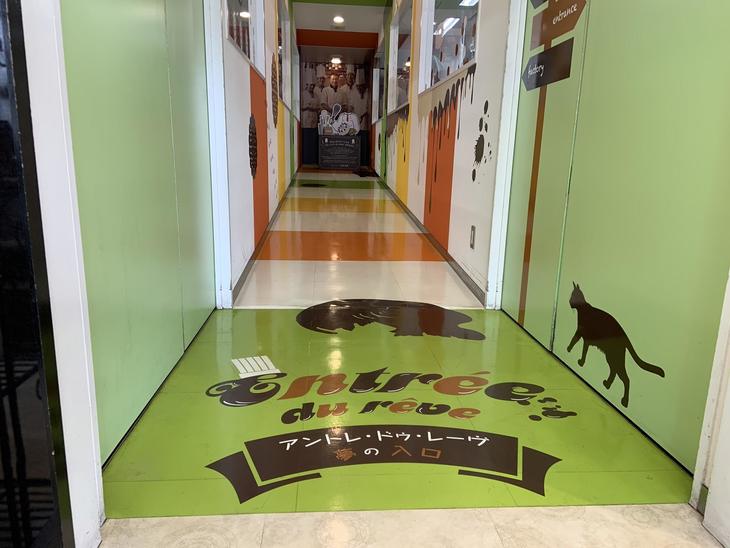 写真ではわかりにくいですが、この通路は、奥に行くほど高くなっています。小さなお子さんでも見られるようにと、ポアール代表取締役社長兼グランシェフの辻井良樹氏の発案です。