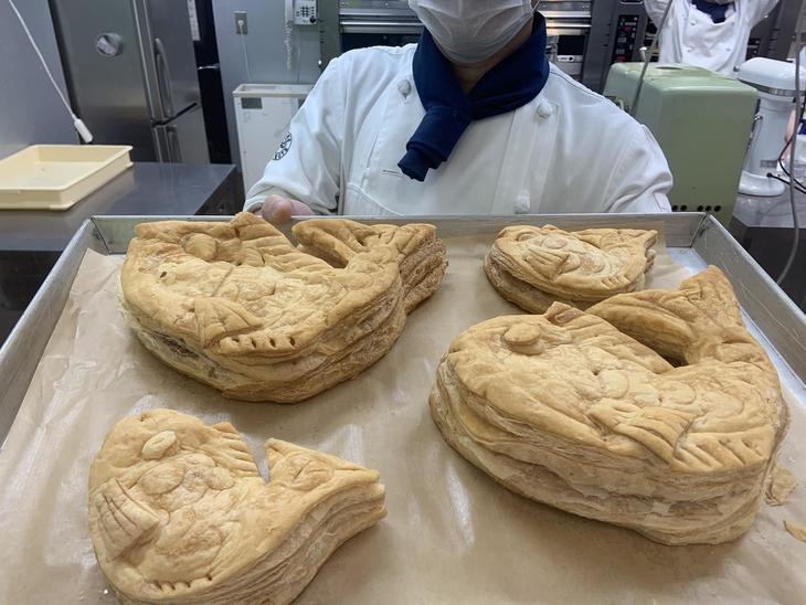 "アップルパイ"が焼きあがりました。ここでは、見学途中に食べたくなった商品は、スタッフに言えば買うことができます。