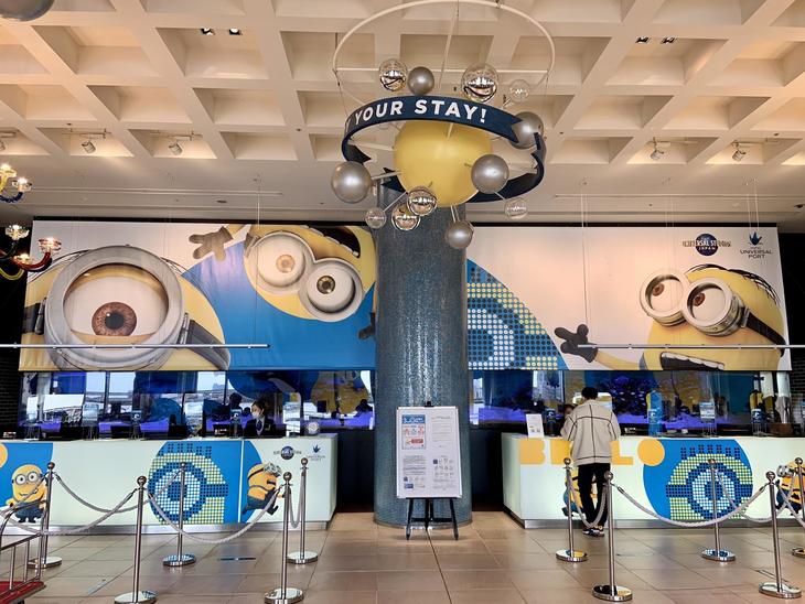 ユニバーサル・スタジオ・ジャパンとコラボレーションした「ミニオンルーム」があり、ロビーやエレベーターにはミニオンのデコレーションが!
