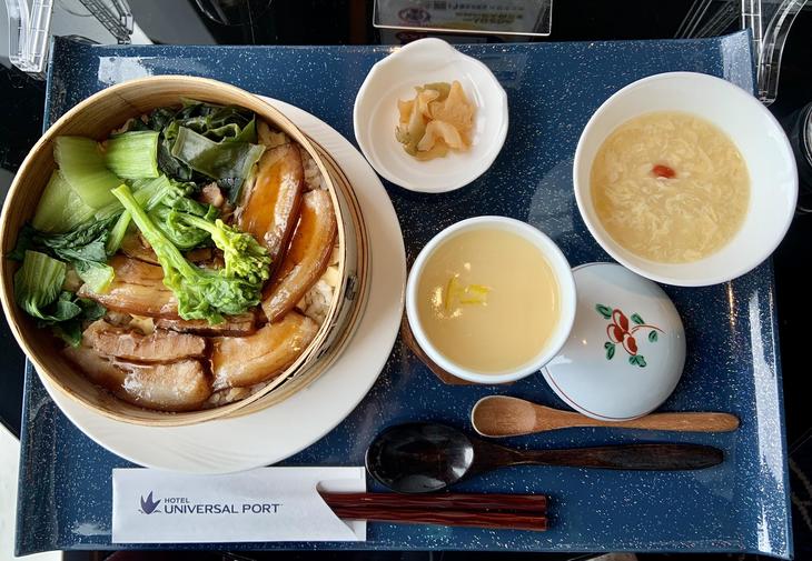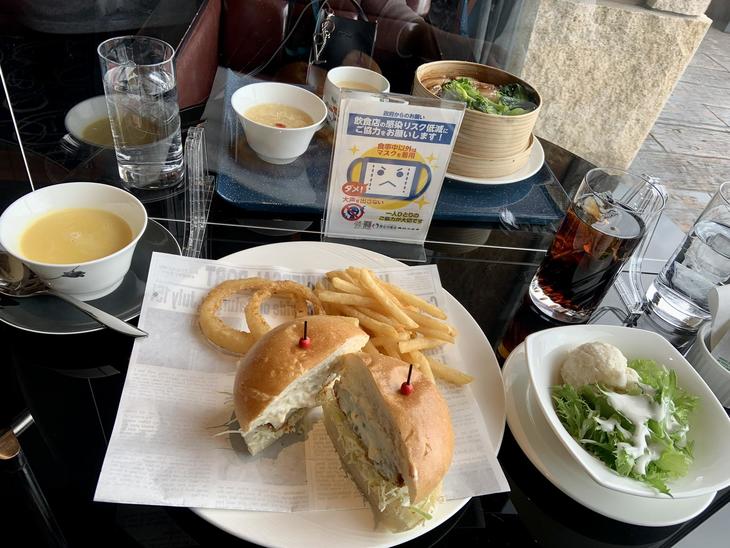 写真は『トンポウロウと春野菜のセイロ蒸しセット』1,200円(税・サ込み)です。ドリンクやデザートまで付いています。もう一つランチのおすすめは1日10食限定『真鯛のフィッシュバーガーセット』1,100円(税・サ込み)です。どちらもお味は本格的で、高コスパです。4月は『天丼セット』と『チーズとアボカドのバーガーセット』が登場します。