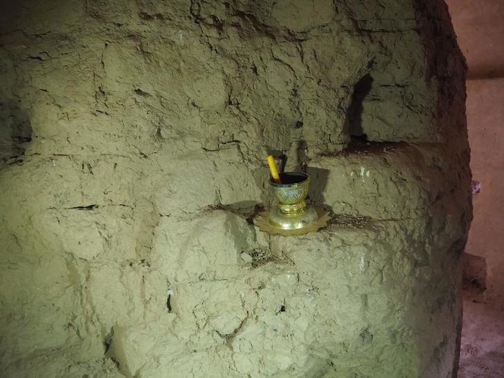 ファヤズテパで目立つのが2世紀に建てられたといわれるストゥーパ。といっても外から見えるのはあくまで後から取り付けられた保護カバーですが、中の原物も見せていただきました。