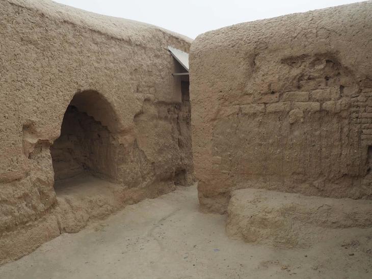 遺跡の端は崖になっていますが、現在は遠くを流れているアムダリヤの水がかつてはここまで来ていたとのこと。そしてここには船着き場があり、対岸との間を船が行き来していたそうです。当時は中央アジアの玄関口としてにぎわっていたのでしょう。