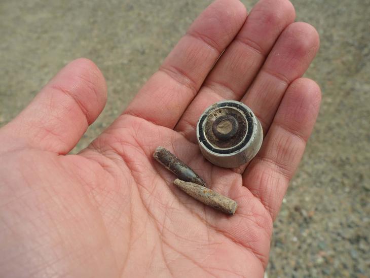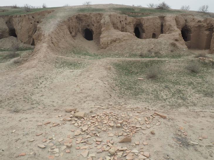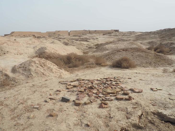 タクシー運転手は遺跡に到着するなり、「アムダリヤ、つまりアフガニスタン国境の方角へカメラを向けないでくださいね。兵士がすっ飛んでくるかもしれないので」と警告。そう、ここは国境沿いにある遺跡のため兵士たちの警戒区域になっているのです。これでも以前よりは緩くなった方で、前大統領の政権時にはせっかくここで発掘調査を予定していても兵士の演習があると入域許可が下りなかった、と加藤先生のご著書に書かれています。またソ連時代にはまさにこの場で軍事演習を行っていたそうで、土器に混じって時折薬莢も散らばっていました。あと何百年もすれば、この薬莢も遺跡からの貴重な出土品になるのでしょうか……。