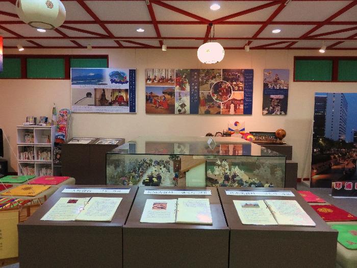 「日韓資料館」では、日韓交流の歴史、韓国の文化などを紹介しています。