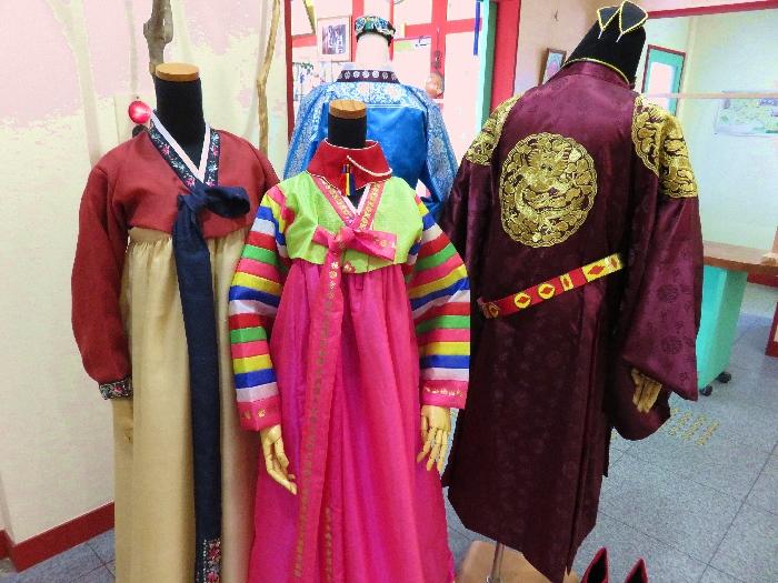残念ながら新型コロナウイルス感染症の影響で現在は行われていませんが、韓国の民俗衣装"チマチョゴリ"の試着ができるコーナー。現在は、展示のみとなっていますが、異国の民族衣装を着て旅の思い出に記念撮影とか楽しいでしょうネ。