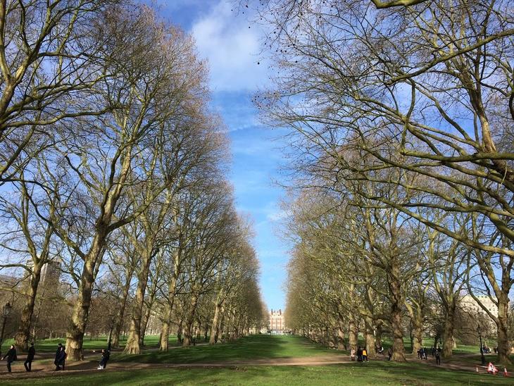 バッキンガム宮殿横の「グリーン・パーク(The Green Park)」は規模がそこまで大きくなく、平日の朝ですと公園内の並木道を通ってグリーン・パーク駅に向かう通勤客や、マイペースに散歩をする人々などでほどよくにぎわっています。ロンドンに8つある王立公園のなかで最も小さく、ほかにはない特徴を兼ね備えた独特の公園です。