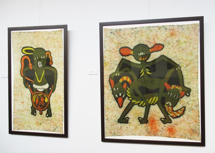 この絵は、ヘンドリックの祖父でタンザニアを代表する画家ジョージ・リランガの生前の作品です。ヘンドリックはジョージのもとで絵を学び、シェタニをモチーフにした絵を描くようになりました。ジョージが描くのは夢のなかに出てきたシェタニだそうですが、ヘンドリックが描くのは彼自身のなかに棲むシェタニだといいます。